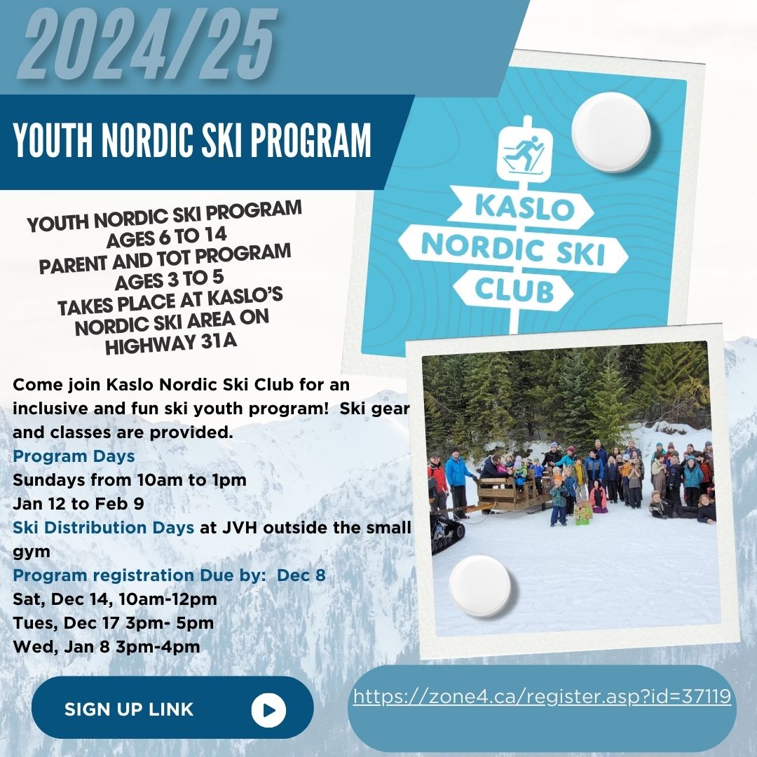 Come join Kaslo Nordic Ski Club for an inclusive and fun ski youth program! Ski gear and classes are provided.